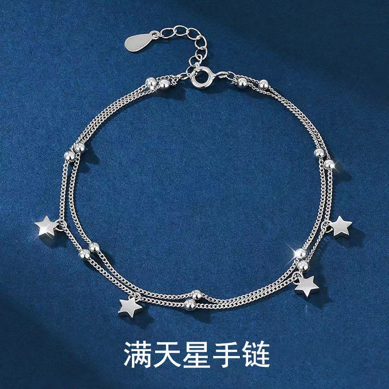 Silver-plated Double-layer Star Bracelet Girl's Korean-style Round Bead Five-pointed Star Bracelet All-match Internet Celebrant Live Cross-border Supply