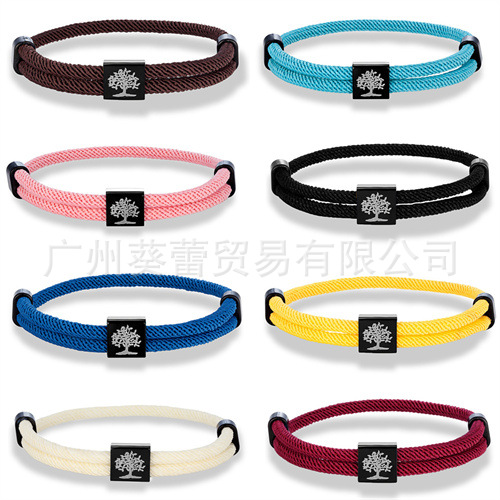 Amazon New Black Square Stainless Steel Tree of Life Hand Rope Adjustable Milan Rope Simple Boys and Girls Hand