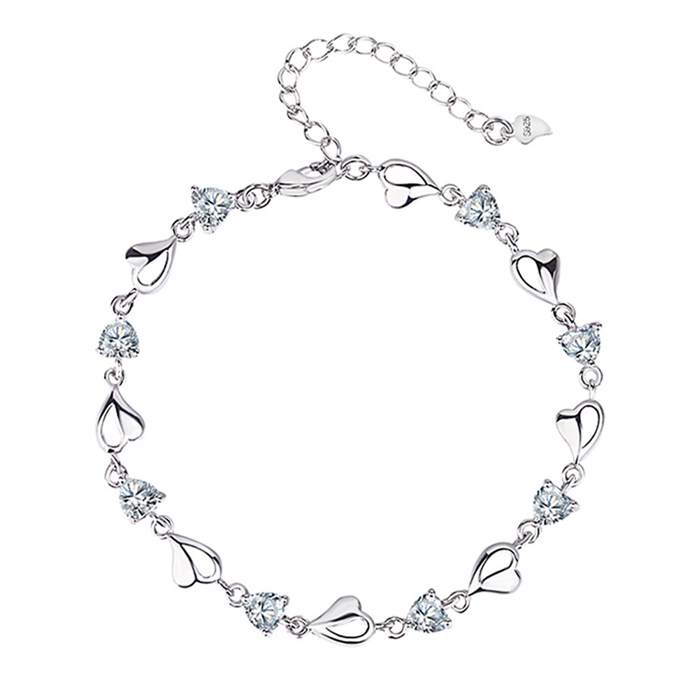 Korean Fashion Silver Jewelry Sky Blue Crystal Zircon Love Bracelet Female Birthday Gift Couple Bracelet Accessories Bracelet