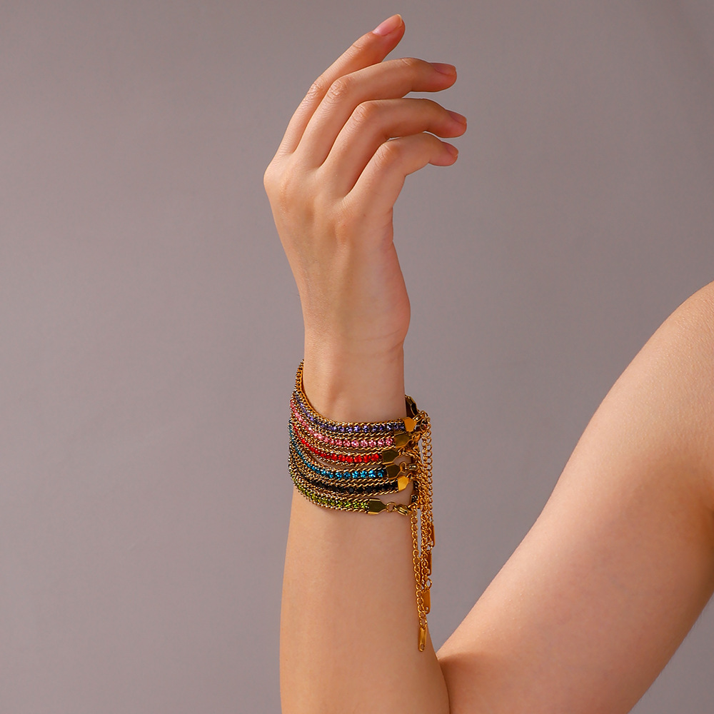 Ins Trendy European and American Style Personality Design Shiny Zircon Bracelet Color Stainless Steel Bracelet 18K Gold Niche Bracelet for Women