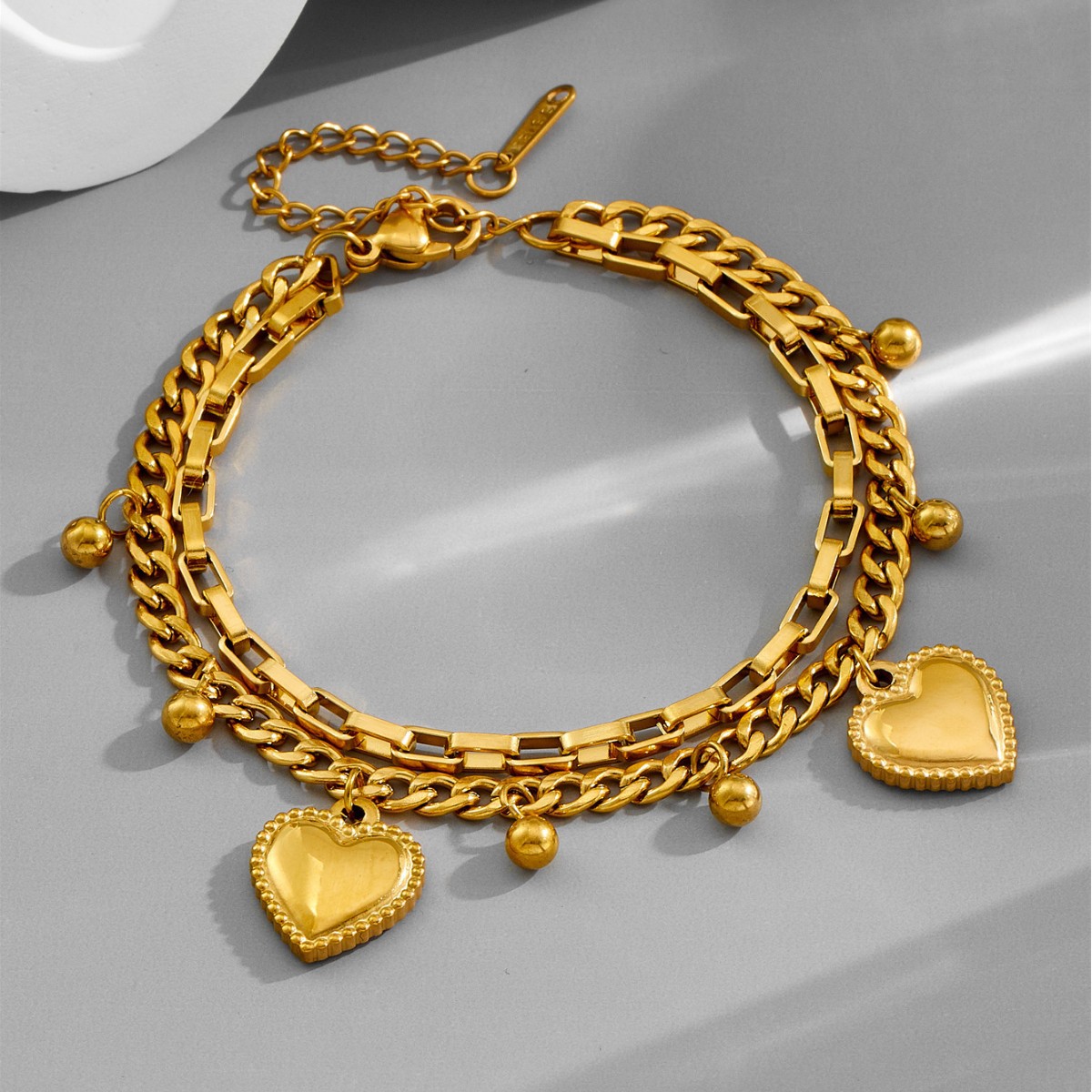 Japanese and Korean Style Cute Round Bead Bracelet Girl's Niche Design Puppy Pendant Summer New K Gold Color Titanium Steel Hand Jewelry