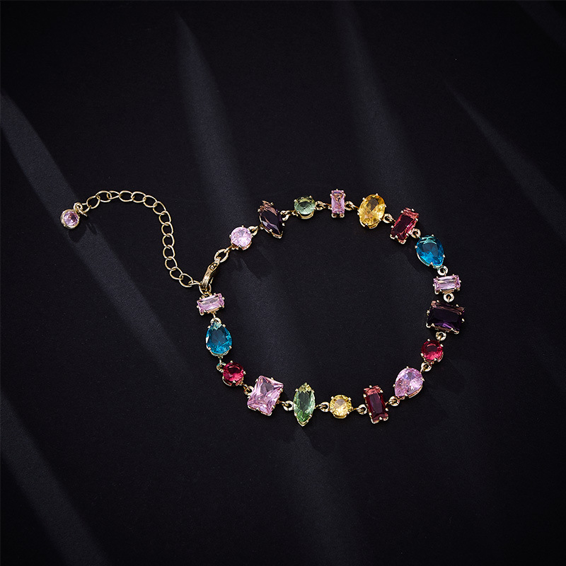 Cross-border supply micro-inlaid colored zircon claw chain niche design chain bracelet women's fashion Joker jewelry wholesale