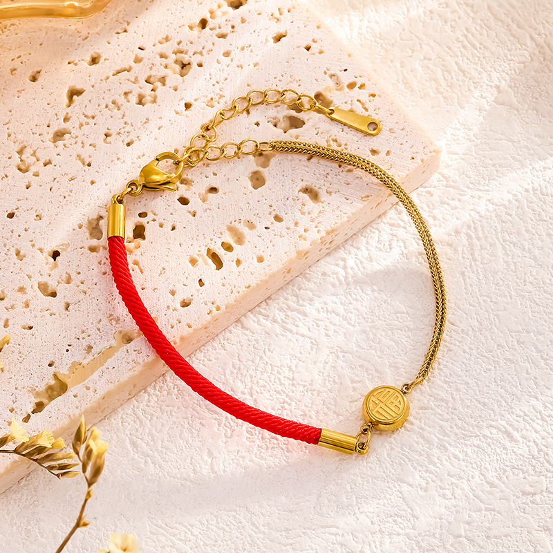 Red Riding Book Explosive Double-sided Fuxi Bracelet Women's Red Rope Woven Design Fashion All-match Titanium Steel Color-free Hand Jewelry