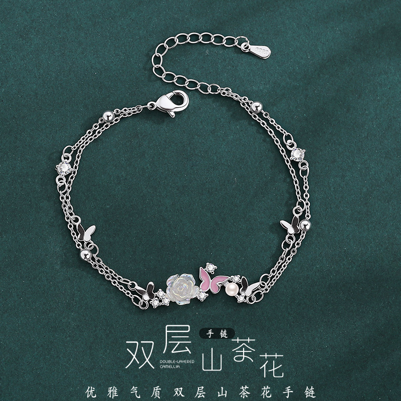 Misheng Camellia Ins Butterfly Bracelet for Women, Light Luxury Exquisite Enamel Flower Bracelet, High-End Holiday Gift