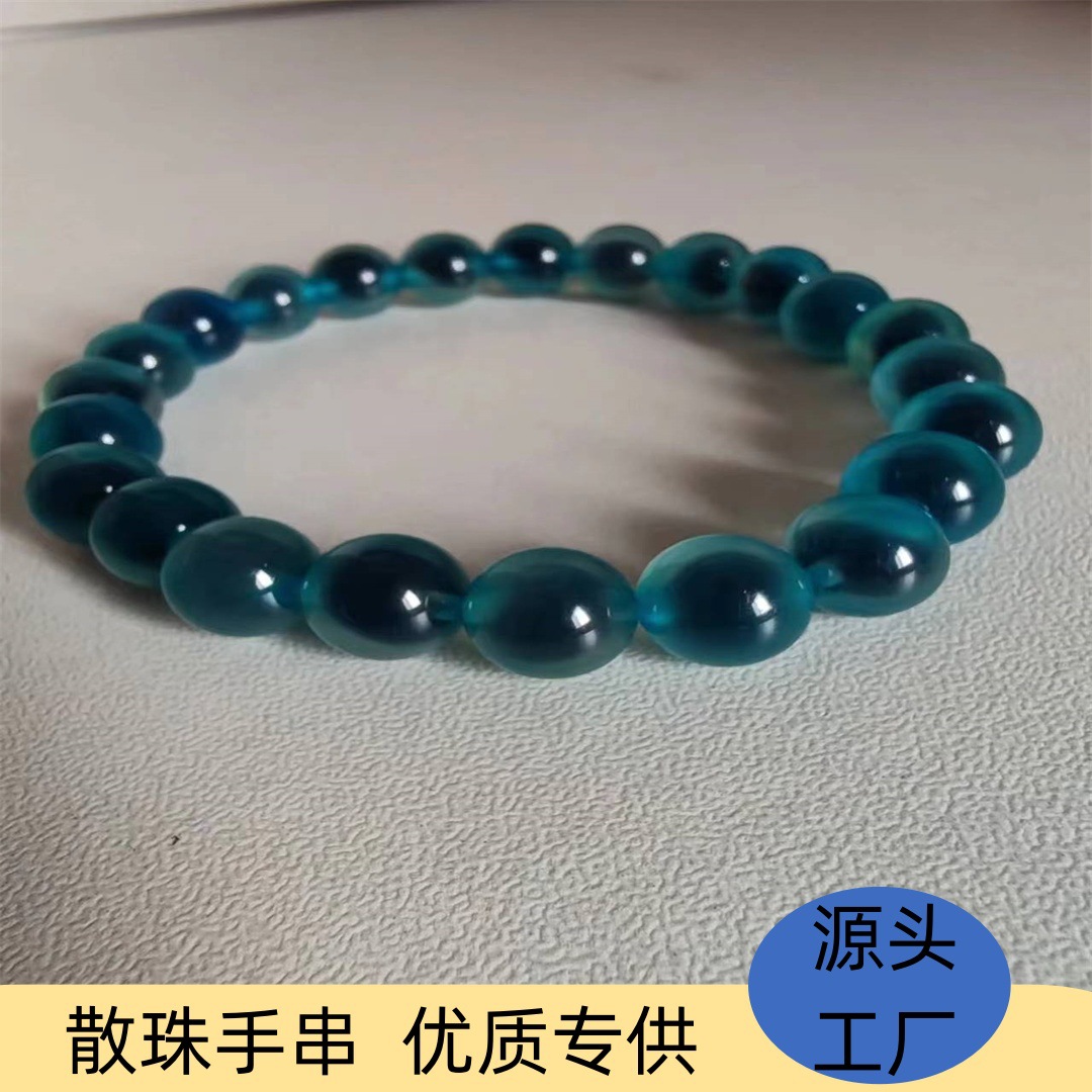Agate Bracelet Loose Beads Fortune-Enhancing Jewelry Accessory Beads 8mm Semi-Sweet Beads Lake Blue Bracelet Wholesale Buddhist Beads Sweet Prayer Beads