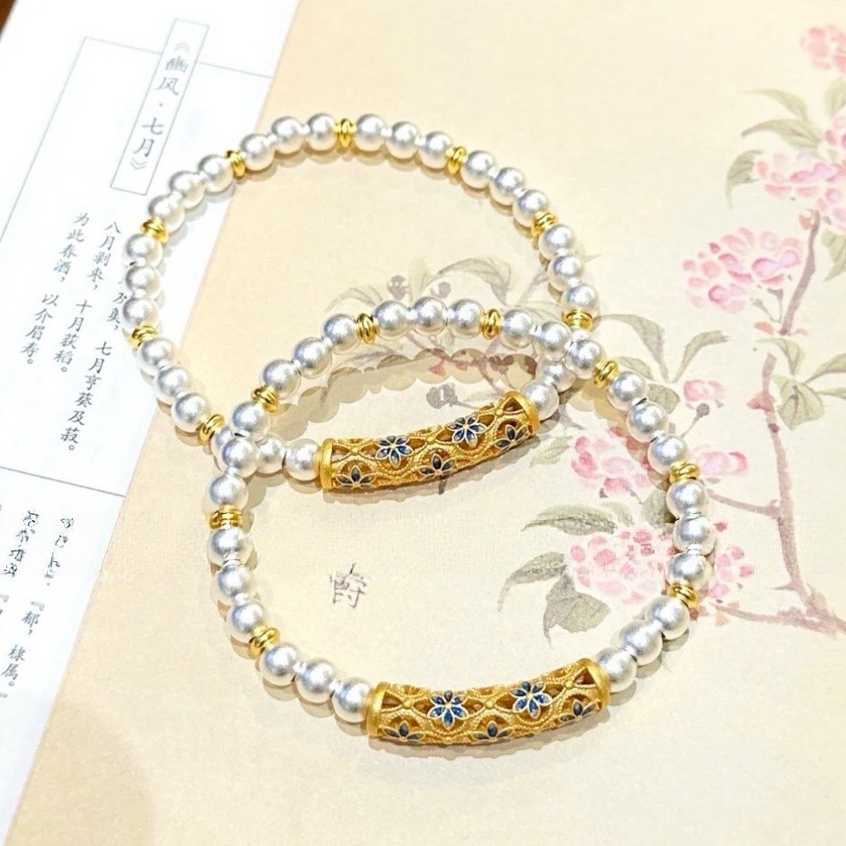 "Qingyun Ancient Rhythm" New Chinese Style Beige Jade White Butterfly Shell Beaded Bracelet Exquisite and Versatile Cat's Eye Double Layer Bracelet for Women