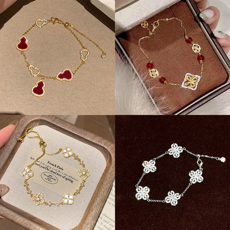 New Arrival Five-Flower Four-Leaf Clover Bracelet Women's Light Luxury Niche Design Sweet Gold Bracelet Fashionable All-Match Exquisite Jewelry