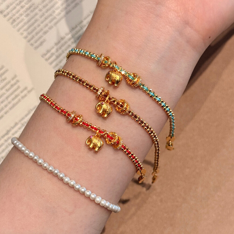 Little Golden Elephant Red Rope Bracelet Light Luxury High-End Zodiac Year Braided Bracelet Women's New Chinese Style Year of the Horse Good Luck Bracelet