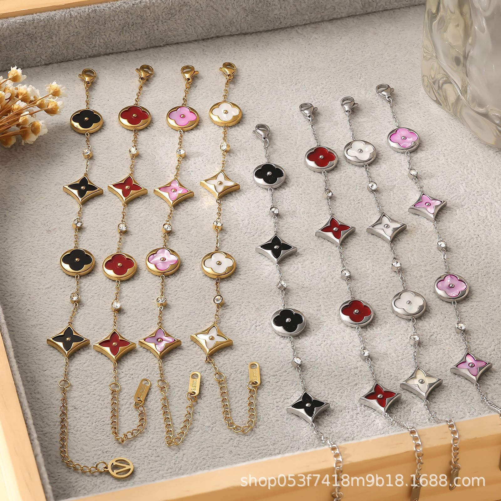 Cross-Border Hot-Selling Non-Fading Titanium Steel Four-Leaf Clover Bracelet for Women 18K Gold Fashion Ns Style Versatile Hand Jewelry Petal Elements