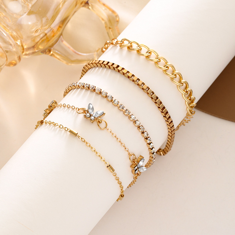 Cross-border Hot Jewelry Temperament Cold Style Claw Chain Bracelet Women's Distinctive Butterfly Diamond Chain Combination 5 Pieces Bracelet