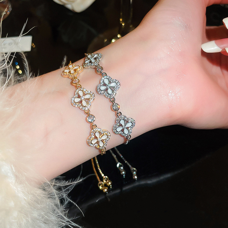 CDD European and American Cross-border Hot-selling Alloy Single-sided Fritillaria Lucky Four-leaf Clover Bracelet Women's Fashionable Simple All-match Bracelet