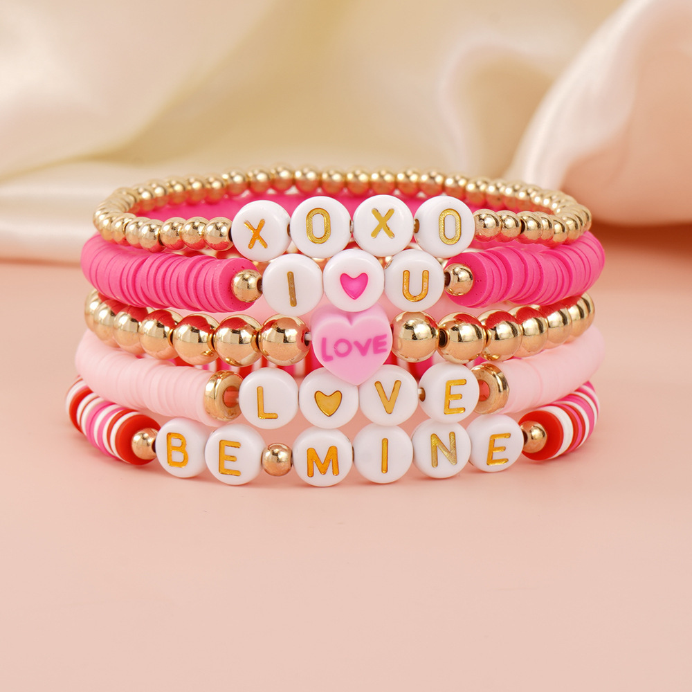 Cross-border New Love Multi-layer Valentine's Day pink Love Pendant Beaded Soft Ceramic Elastic Stacked Wearing Bracelet for Women