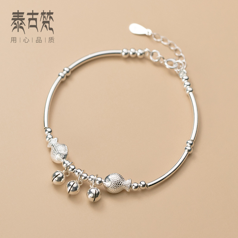 925 plain silver sweet fish Bell with extension chain bracelet anklet female diy handmade jewelry wholesale C0372