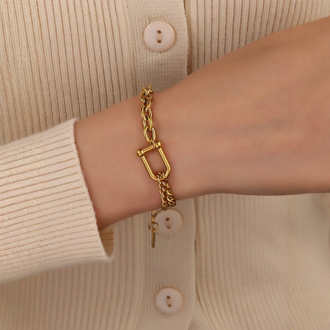 European and American Cross-Border 18K Gold-Plated Stainless Steel Geometric Horseshoe Buckle Bracelet U-Shaped Chain Personalized Stitching Bracelet Women's Jewelry
