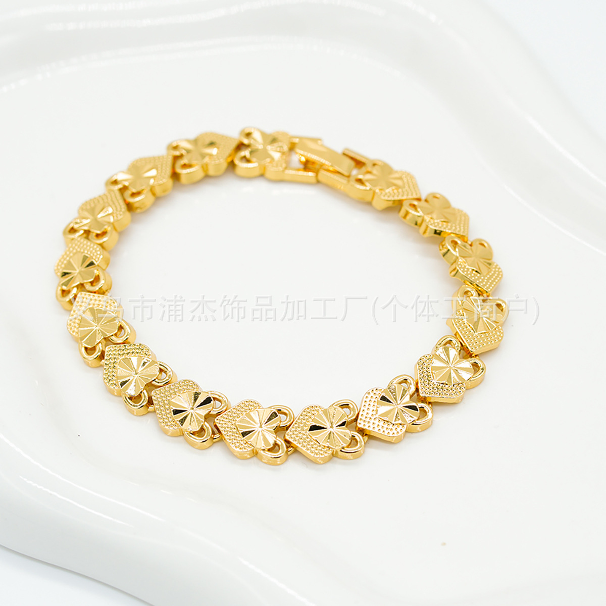 Middle Eastern Sand Gold Color-Preserving Double Heart Gold and Silver Bracelet Dubai Female Bride Wedding Jewelry Cross-Border Factory Wholesale