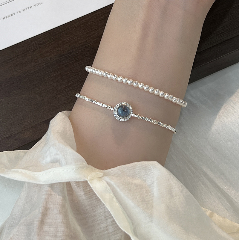 2024 New Aquamarine Broken Silver Pearl Bracelet Girl's Best Friend Exquisite Temperament Light Luxury Niche Birthday Gift
