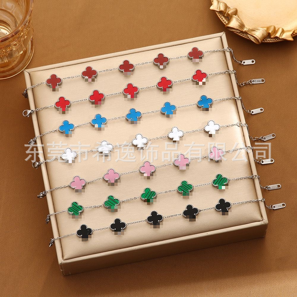 Cross-Border Four-Leaf Clover 9mm Bracelet Accessible Luxury High-End Hot Style Women's Wholesale Jewelry Accessories European and American Fashion Hand Jewelry