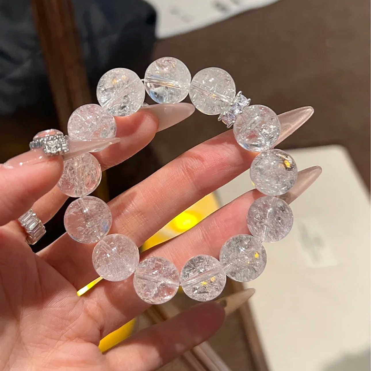 Ice Crushed Ice Bracelet for Women, High-End Imitation White Crystal White Ascestre Bracelet, Ice Crushed Ice DIY Loose Beads Round Beads