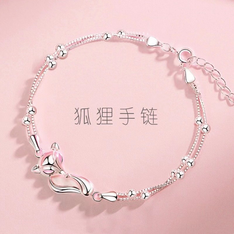 Wen Jian socialite wind four-leaf clover bracelet women's double-layer chain bracelet 18k rose gold Korean version of sweet student temperament net