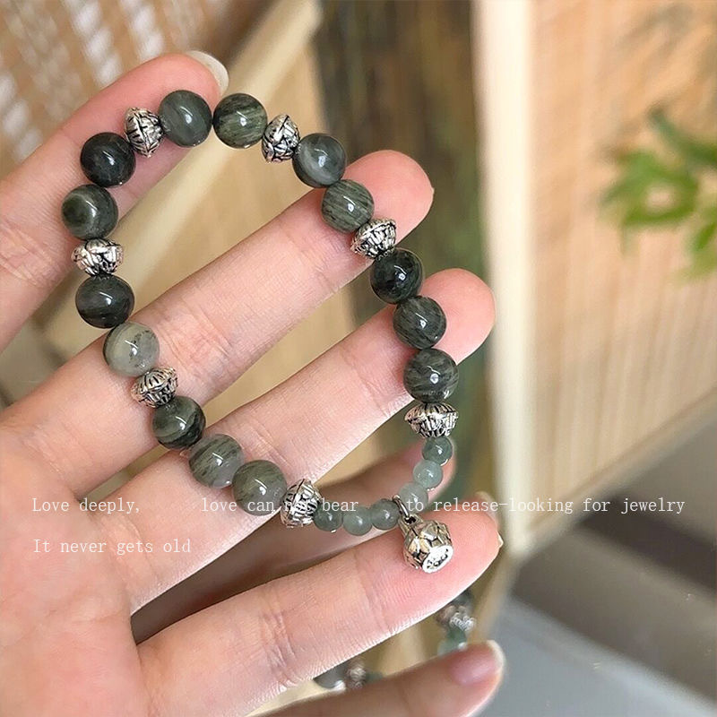 New Chinese Retro Beaded Lotus Bracelet Female Niche Design Ethnic Style Dark Green Bracelet Accessories