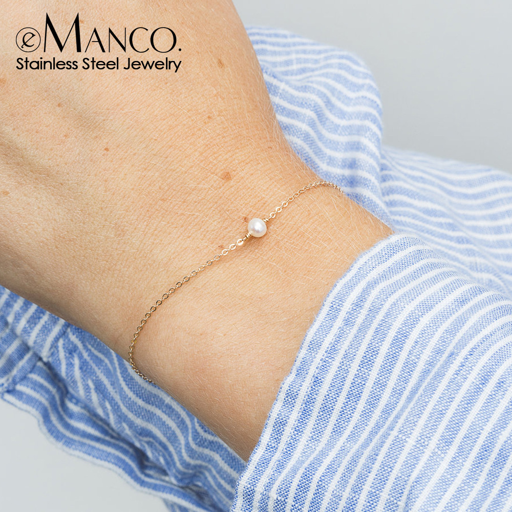 Emanco Women's Casual Stainless Steel Bracelet Imitation Pearl Bracelet Adjustable Fashion Bracelet Hand Accessories Wholesale Distribution