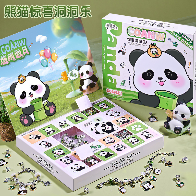 Children's Beading Hole-Punching DIY Materials Birthday Gift Girl Toy Panda Bracelet Gift Box Poke Fun 6 Blind Box