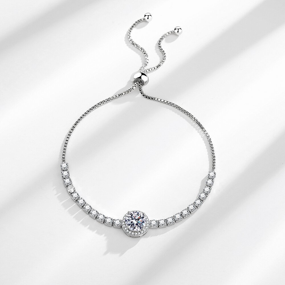 Live Selling French Style Pull-out 2 karat Round Bag Zircon Imitation Moissanite Bracelet Women's Personalized All-match Bracelet