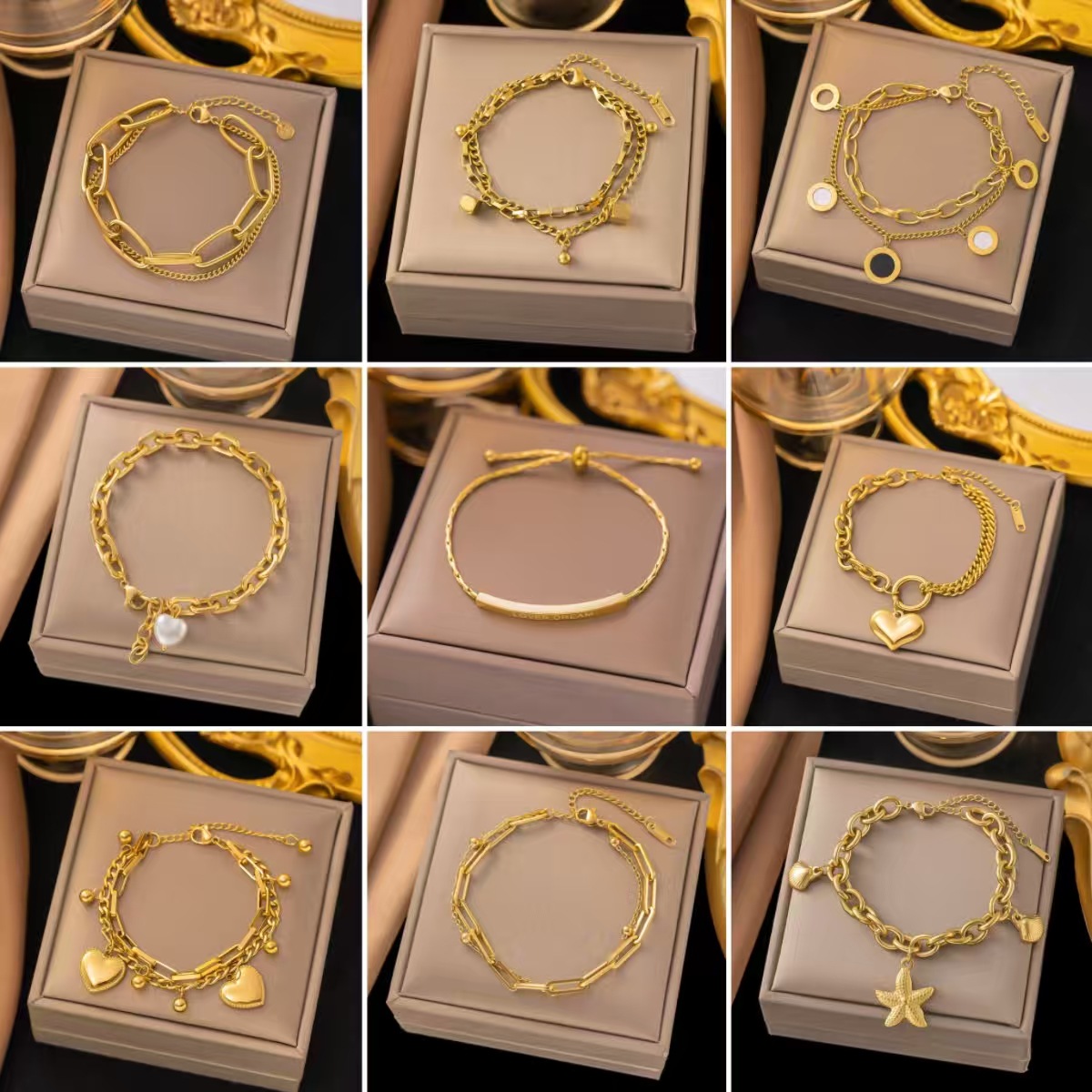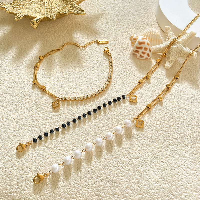 French-Style Light Luxury Double-Layer Four-Leaf Clover Titanium Steel Bracelet for Women, Fashionable Versatile Exquisite High-End Feel Hot-Selling Jewelry That Does Not Fade