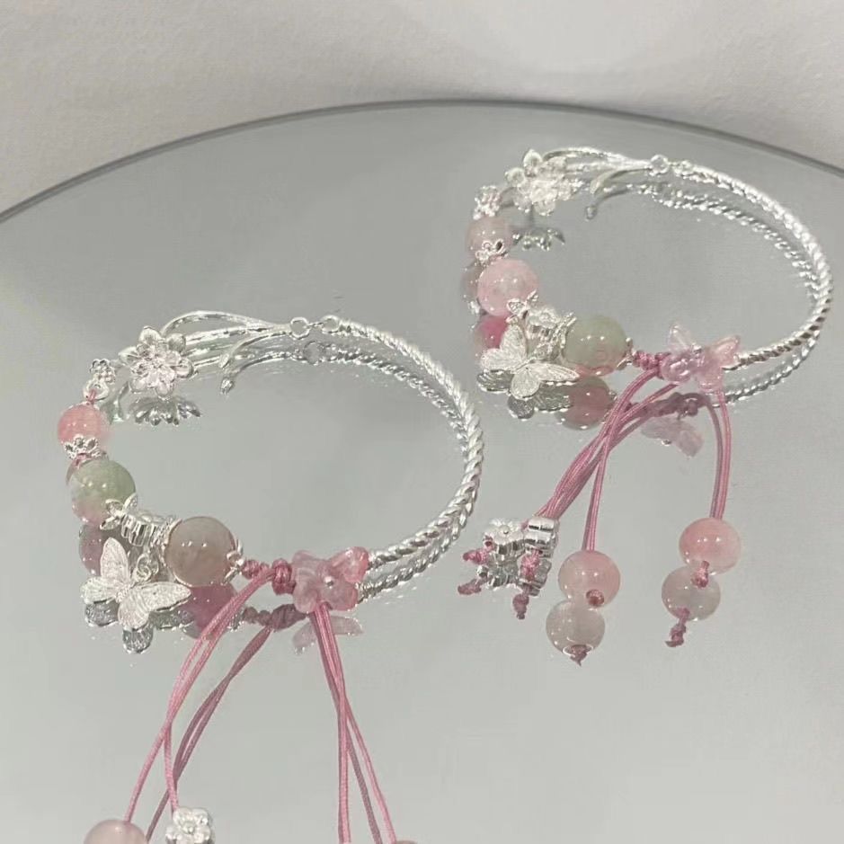 Chinese Antique Butterfly Pink Bracelet Sweet and Delicate Niche High-grade High-value Design Student Bracelet
