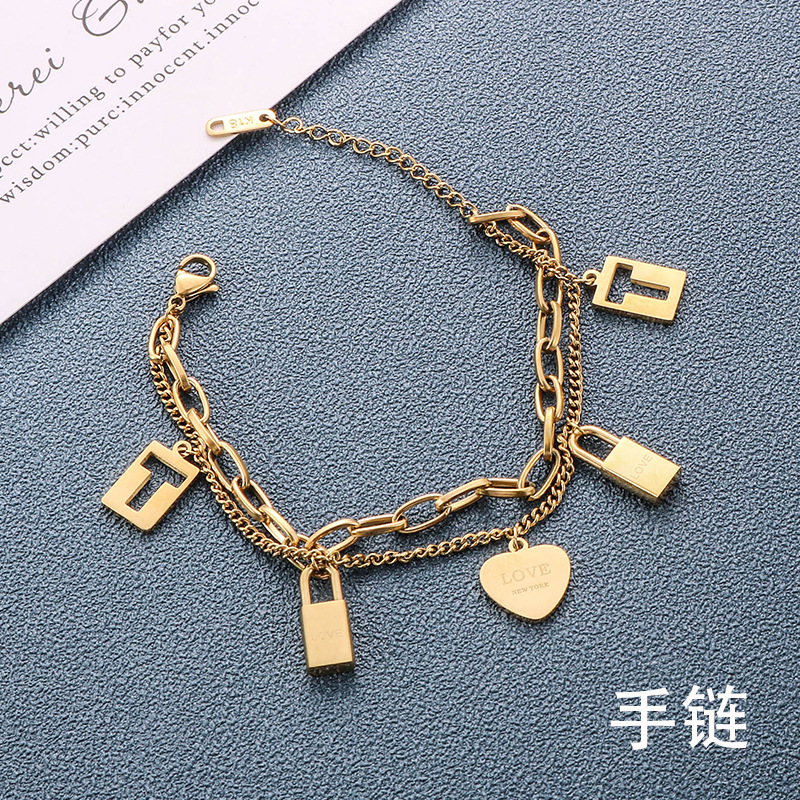 Double-layer heart-shaped key titanium steel bracelet women's new products on the market popular handmade jewelry women's bracelet trembles Net red explosions
