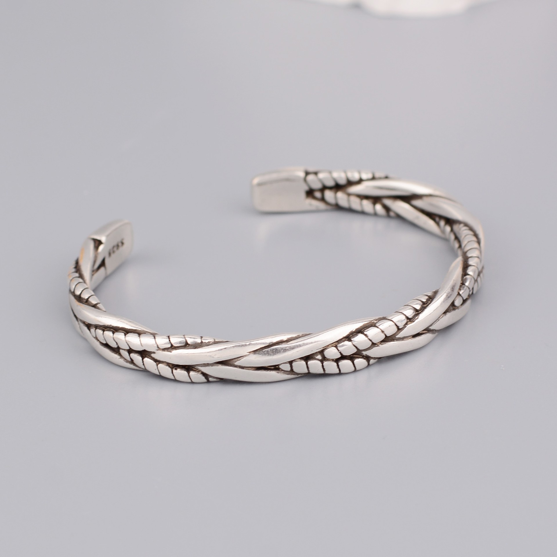 Korean style retro Thai silver woven twisted twist bracelet women's simple fashion personality all-match open adjustable bracelet