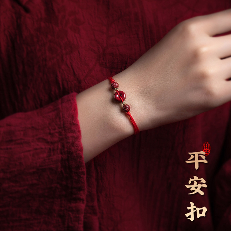 Cinnabar Safe Buckle Bracelet Women's Hand-woven Red Rope Black Rope Adjustable Benmingnian Antique Hand Rope Jewelry Niche Couple