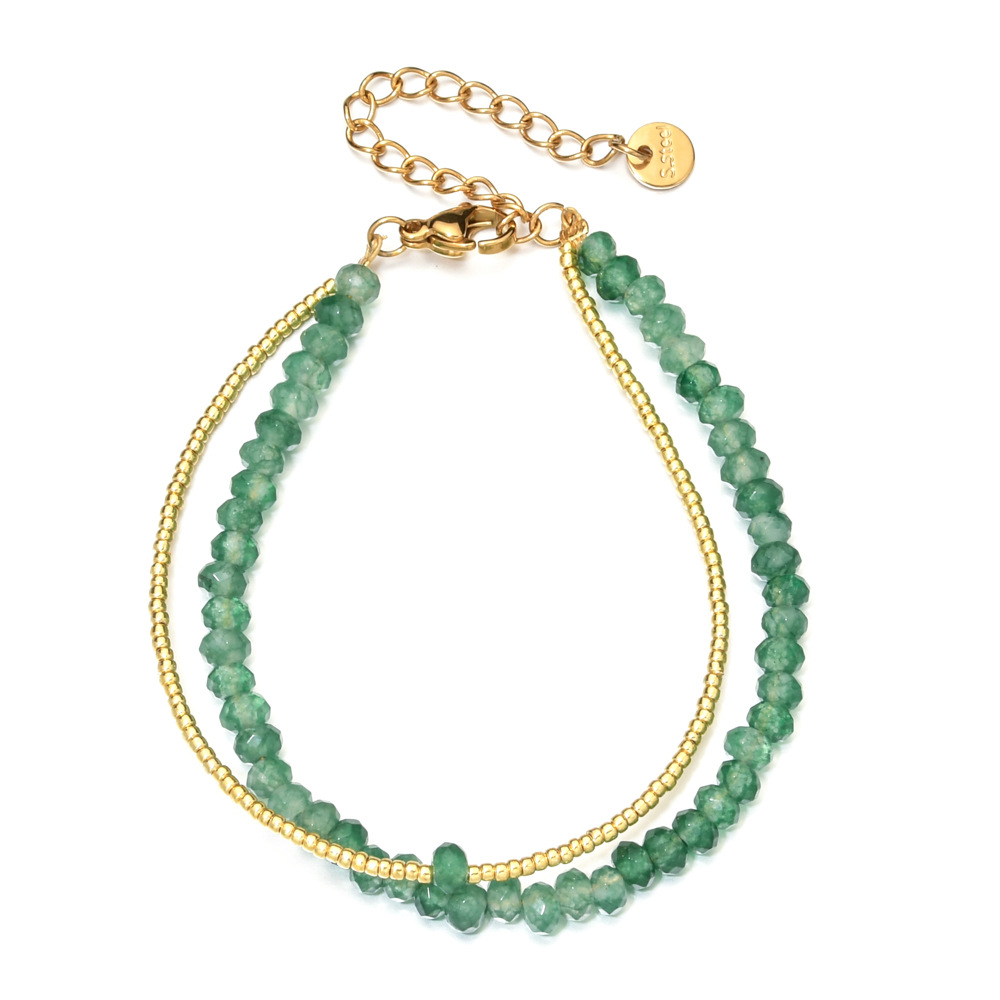 European and American Colorful Elegant Fashion Niche Stainless Steel Gold-Plated Chain Double-Layer 4mm Natural Stone Stacked Bracelet for Women Wholesale
