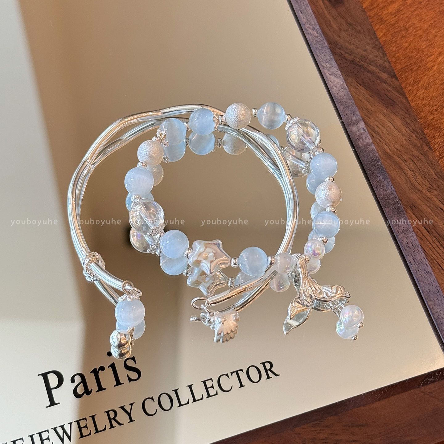 Cool Gift Blue Beaded Star Fish Tail Bracelet Women's Niche Design High-End Shell Bracelet High-Value Hand Jewelry
