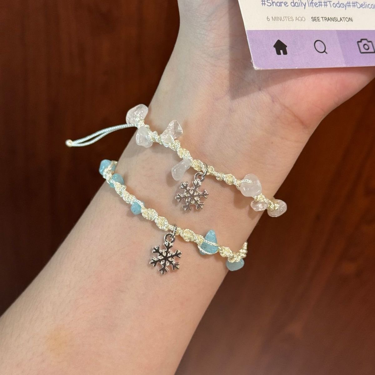 Winter Snowflake Small Fresh Bracelet Hand-Woven Couple Bestie Bracelet Sweet Ins Style Hand Jewelry Gift