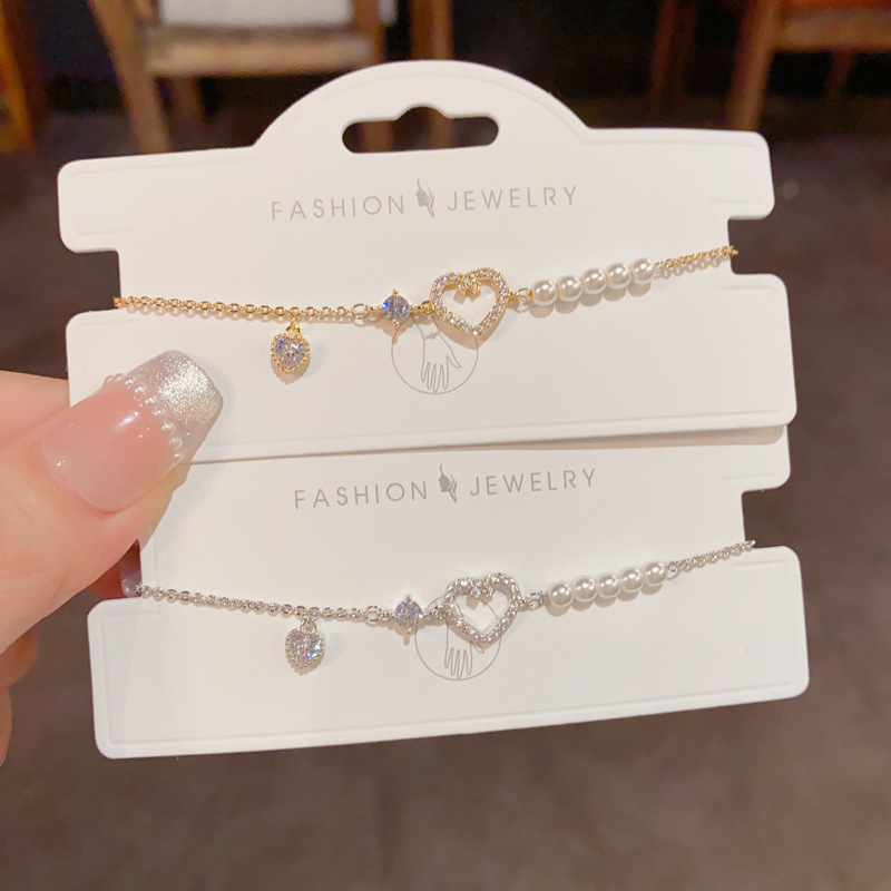 Summer New Style, Sweet, Gentle and Versatile, Diamond-Encrusted Love Pearl Chain Bracelet, Exquisite, Light, Luxurious and Simple Hand Jewelry