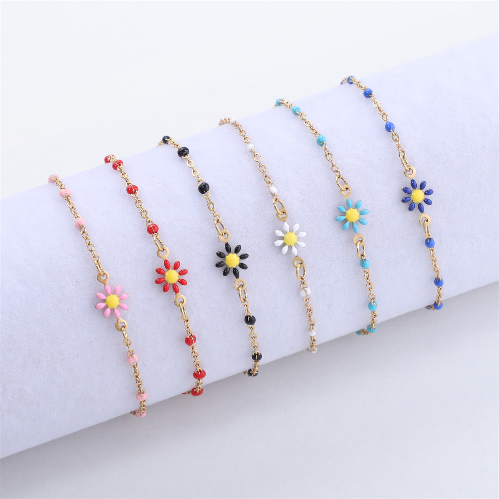 Jin Yiyuan Chrysanthemum Bead Chain 18K Gold Daisy Cross Chain Glaze Bracelet Eight-petal Chrysanthemum Girly Beautiful and Cute