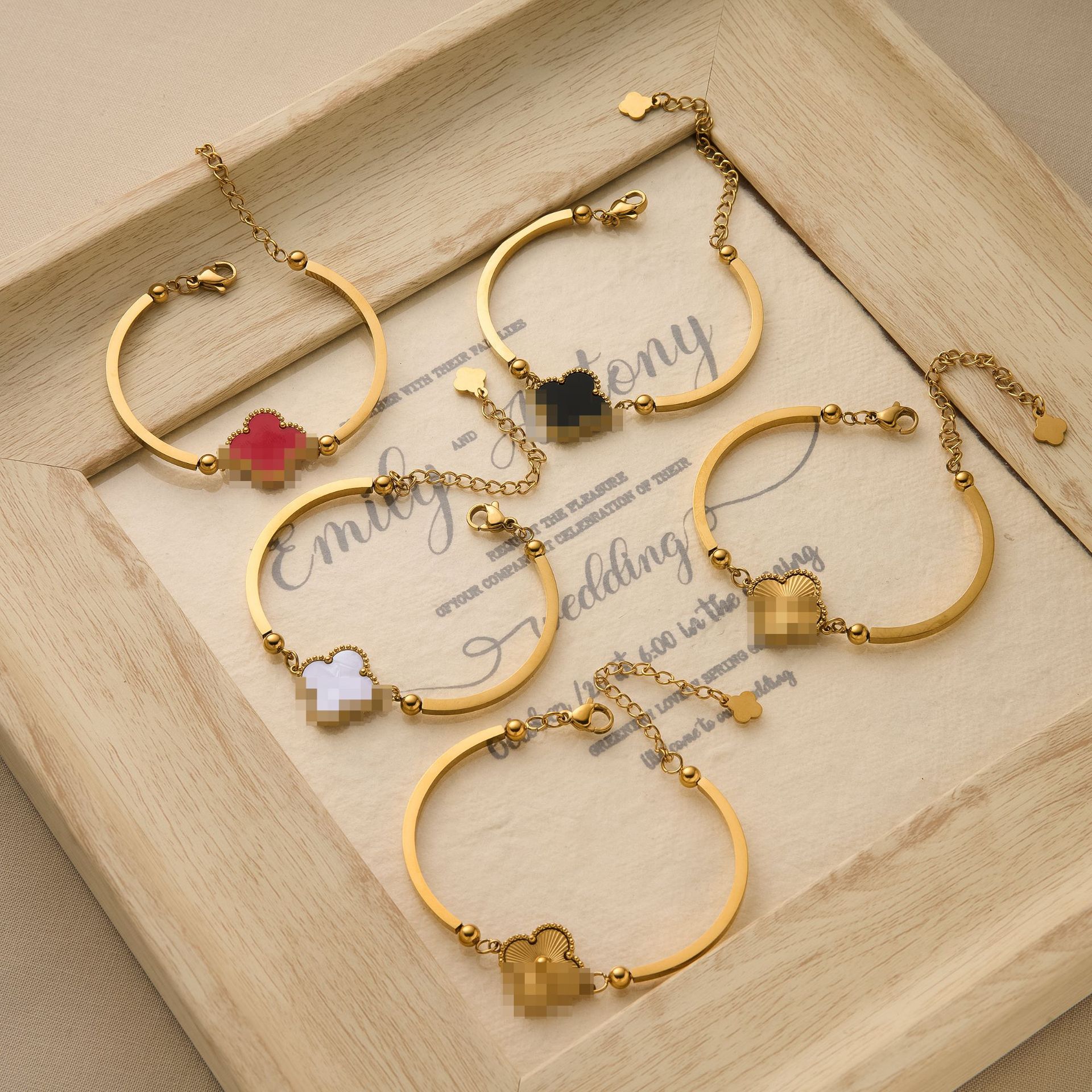 Cross-Border Popular Four-Leaf Clover Titanium Steel Bracelet for Women 18K Gold Accessible Luxury Ins Style Non-Fading Stainless Steel Open Bracelet