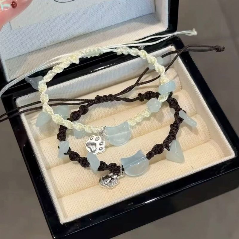 New Gravel Cat Hand-Woven Niche Ins Bestie Bracelet Fresh Ins Sweet and Cute Couple Gift