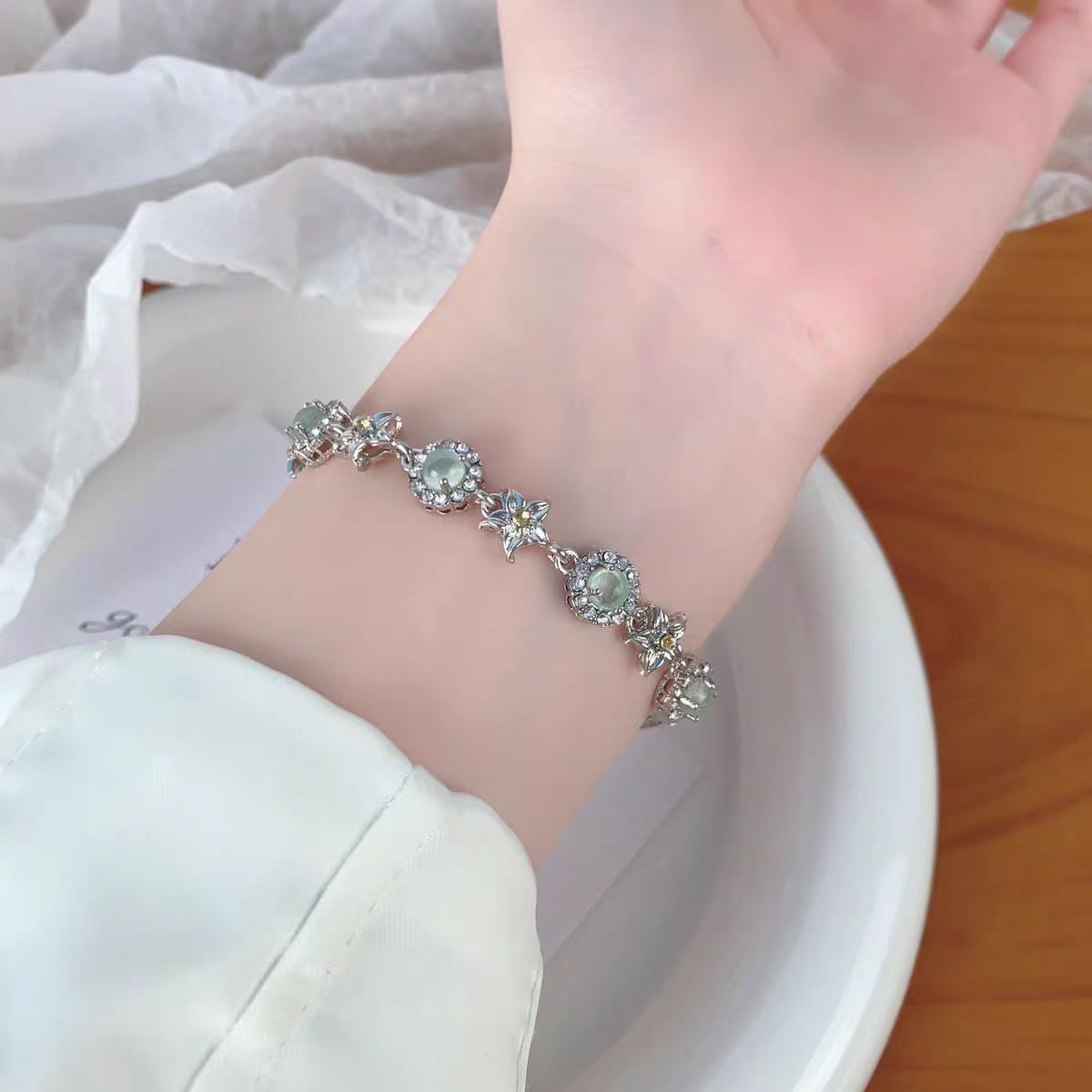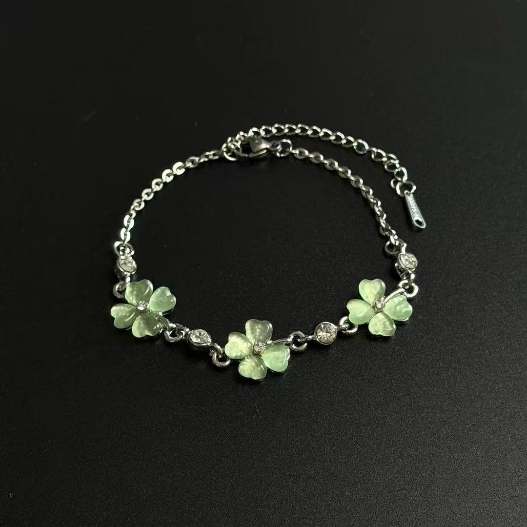 Spring Green Four-Leaf Clover Bracelet for Women Ins Niche Fashion Bestie Bracelet Forest Style Versatile Pastoral Style Sweet Gift