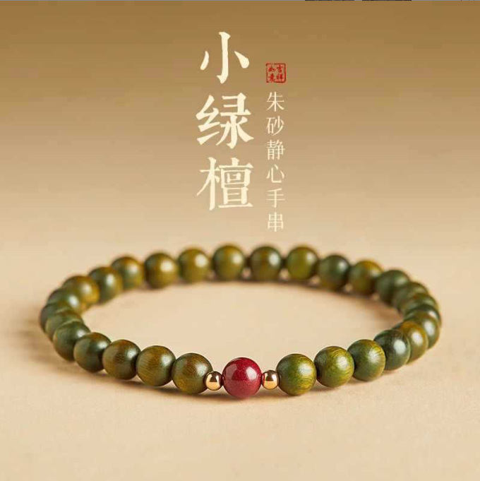 Natural Green Sandalwood Cinnabar Bracelet Women's Meditation Aquiline Niche Bracelet Men's Wooden Plate for Playing with Buddha Beads