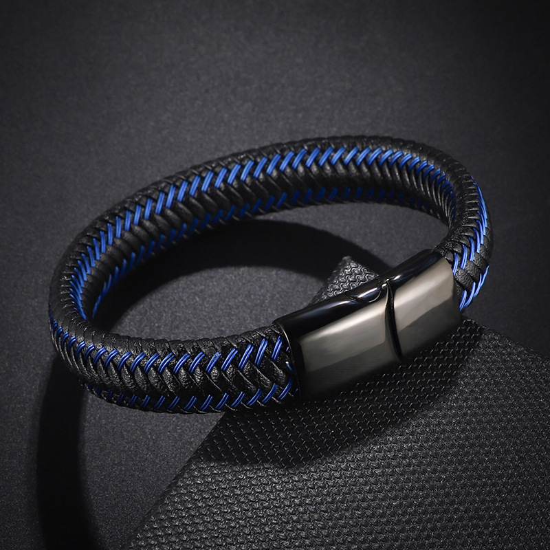 Cross-border supply men's stainless steel leather bracelet Simple Men's steel wire woven leather bracelet factory wholesale