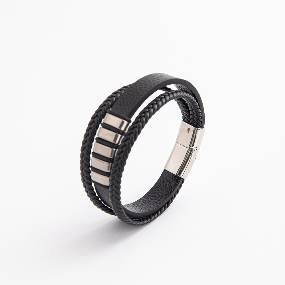 European and American Cross-border Titanium Steel Magnetic Leather Rope Bracelet Men's Three-layer Braided Stainless Steel Bracelet Retro Bracelet Wholesale