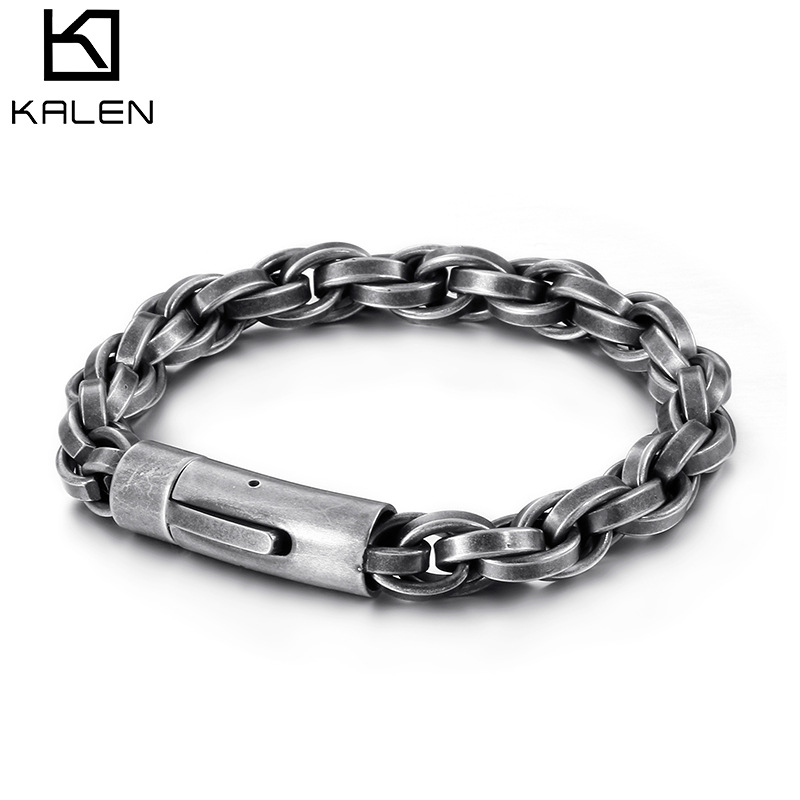 Trendy old keel chain bracelet European and American retro fashion simple stainless steel round grinding front and back chain men's bracelet