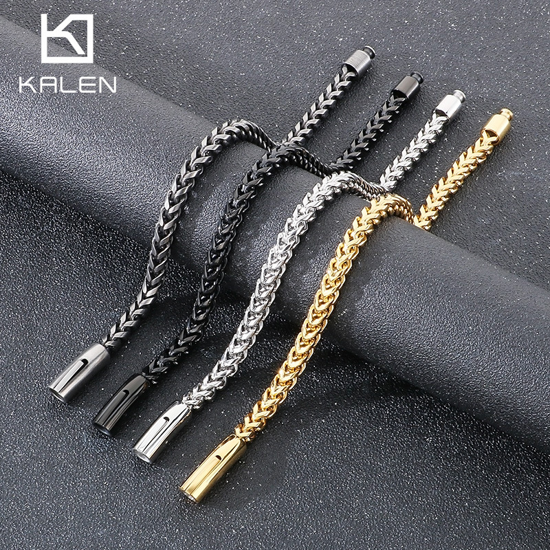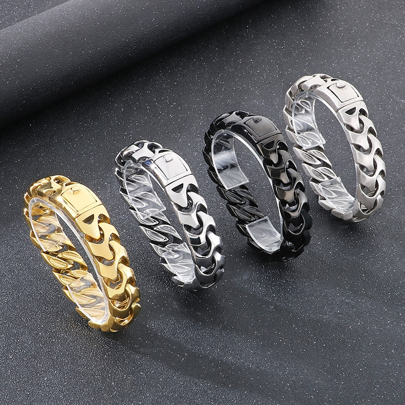 European and American personality square snap bracelet domineering punk vacuum plating keel chain titanium steel men's bracelet