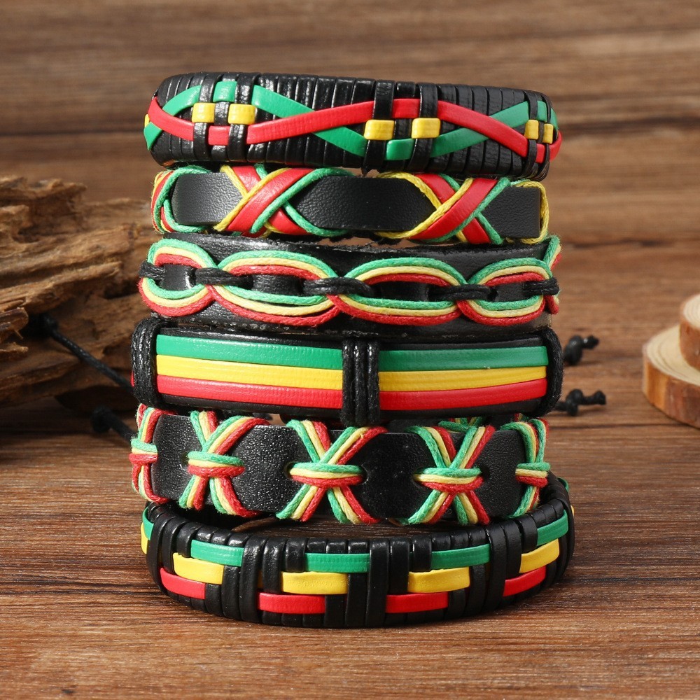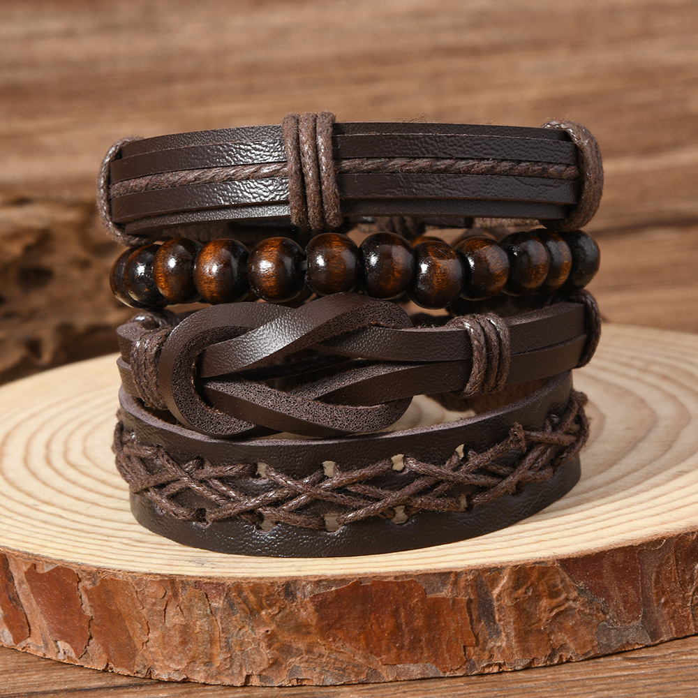 Cross-Border New Products in Stock Wholesale European and American Retro Style Ring Leather Adjustable Multi-Layer DIY 6-Piece Men's Bracelet