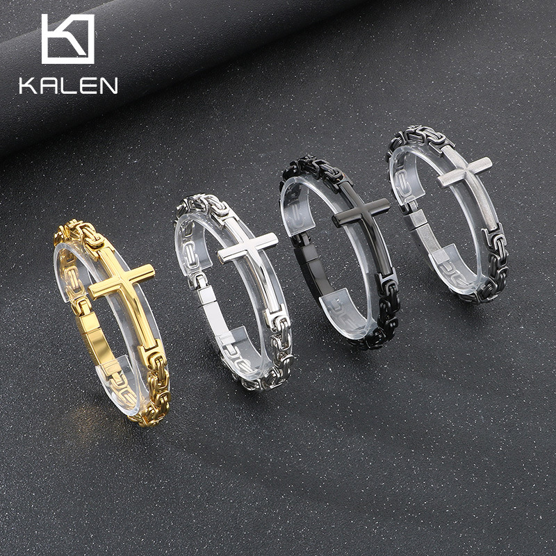 Rock Retro Cross Bracelet European and American Personality Cross Bend Byzantine Imperial Chain Titanium Steel Bracelet Men