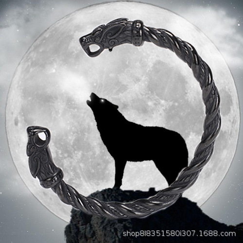 Cross-border European and American titanium steel Viking bracelet personalized stainless steel wolf head woven bracelet Nordic hot men's style bracelet
