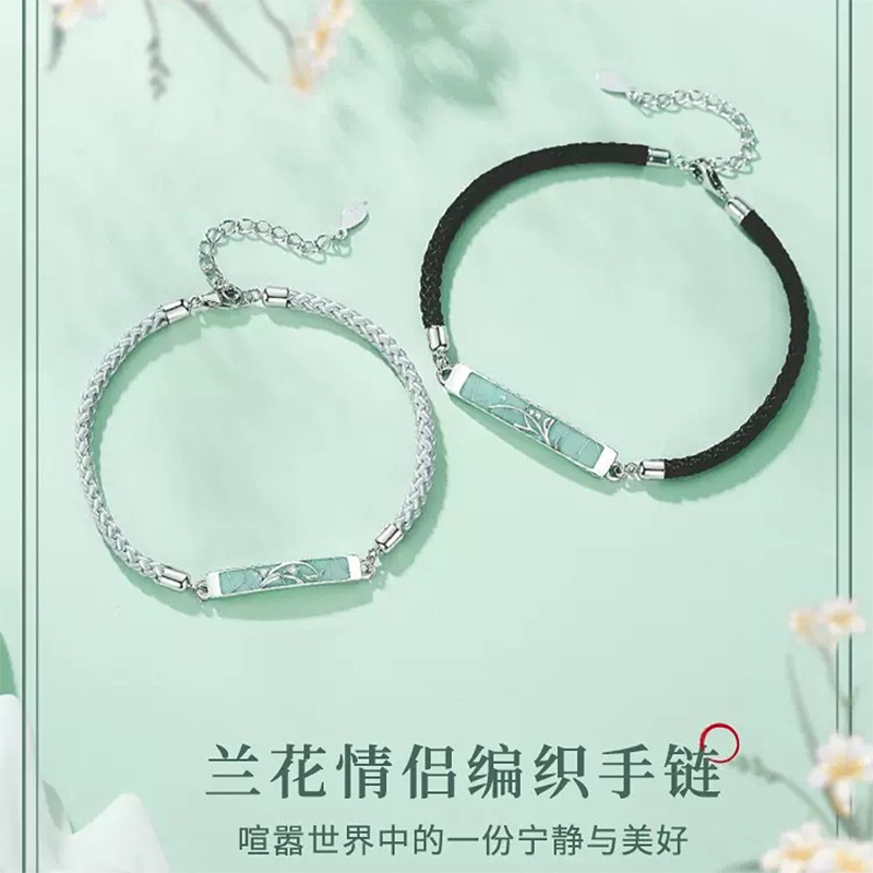 New Chinese Style Blue and White Porcelain Love Orchid Couple Bracelet for Men and Women National Style Bracelet for Girlfriend Valentine's Day Gift