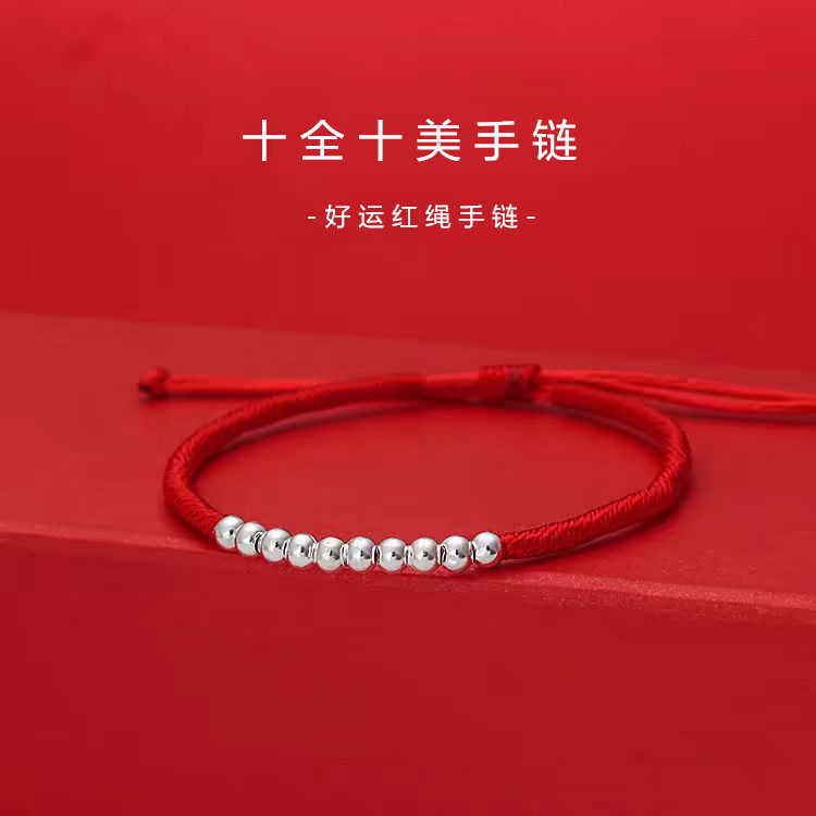 sterling silver 990 perfect bracelet transfer beads red hand rope men and women hand woven silver bracelet gift